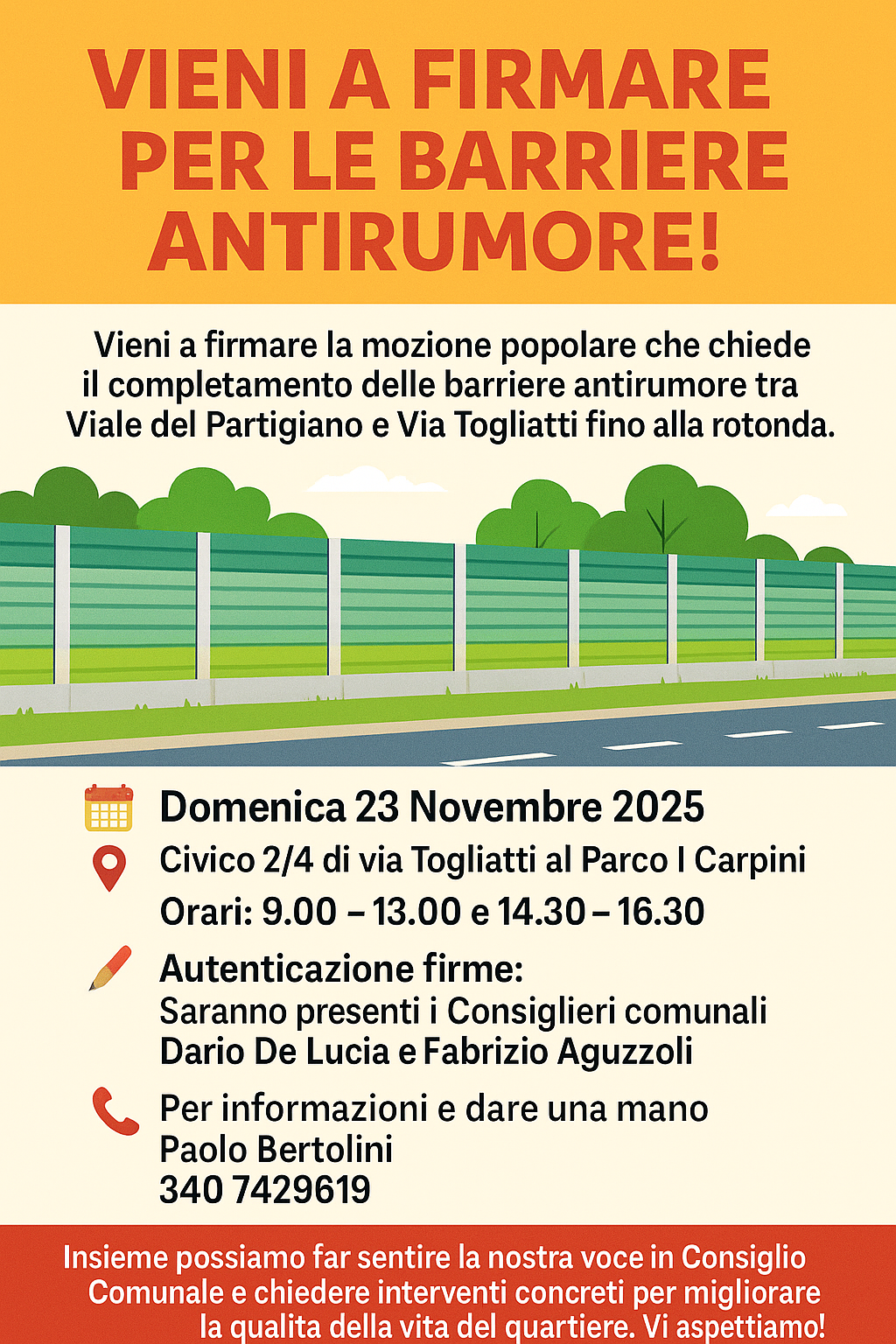 No al rumore: raccolta firme per il completamento delle Barriere di Viale del Partigiano